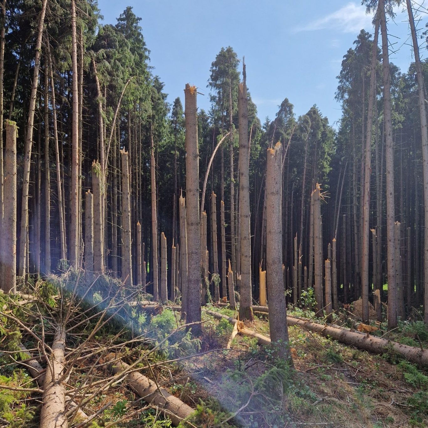 Flach wurzelnde Fichten reagieren besonders empfindlich auf Trockenheit und verlieren bei Stürmen schnell ihre Standfestigkeit. Geschwächte Bäume wiederum bieten ideale Voraussetzungen für Borkenkäfer und andere Schädlinge, die sich rasant ausbreiten und ganze Bestände zum Absterben bringen können. So entsteht ein Kreislauf aus Stress, Schäden und flächigem Waldverlust, der sich immer weiter beschleunigt.